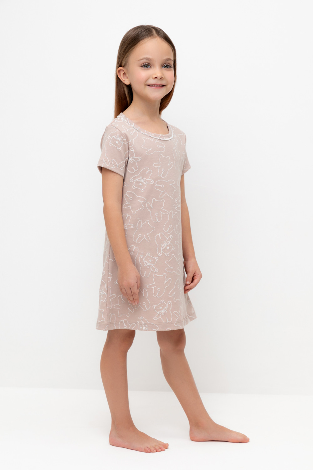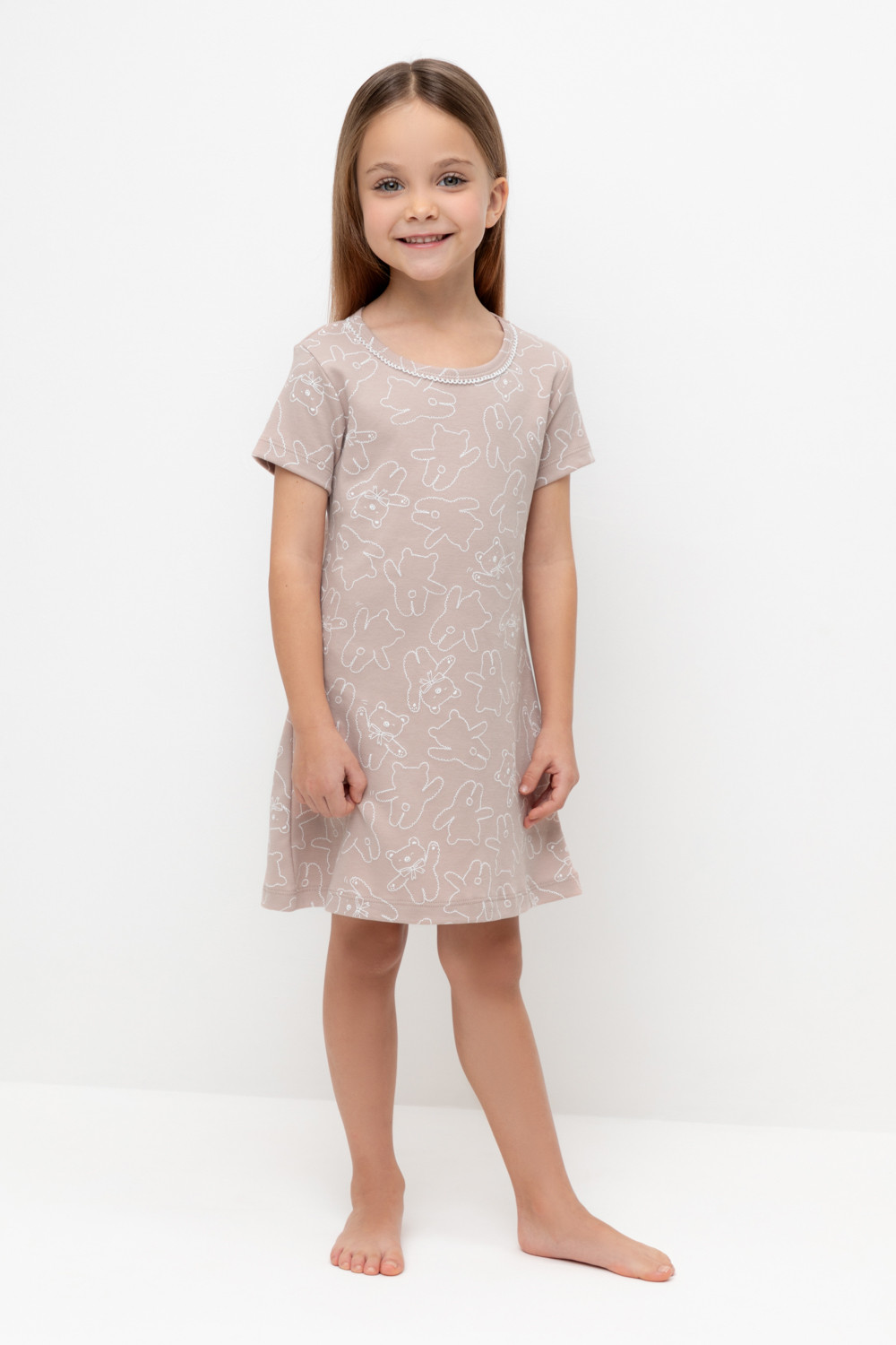 сорочка для девочки К 1156/бежевый,мини плюшевые мишки