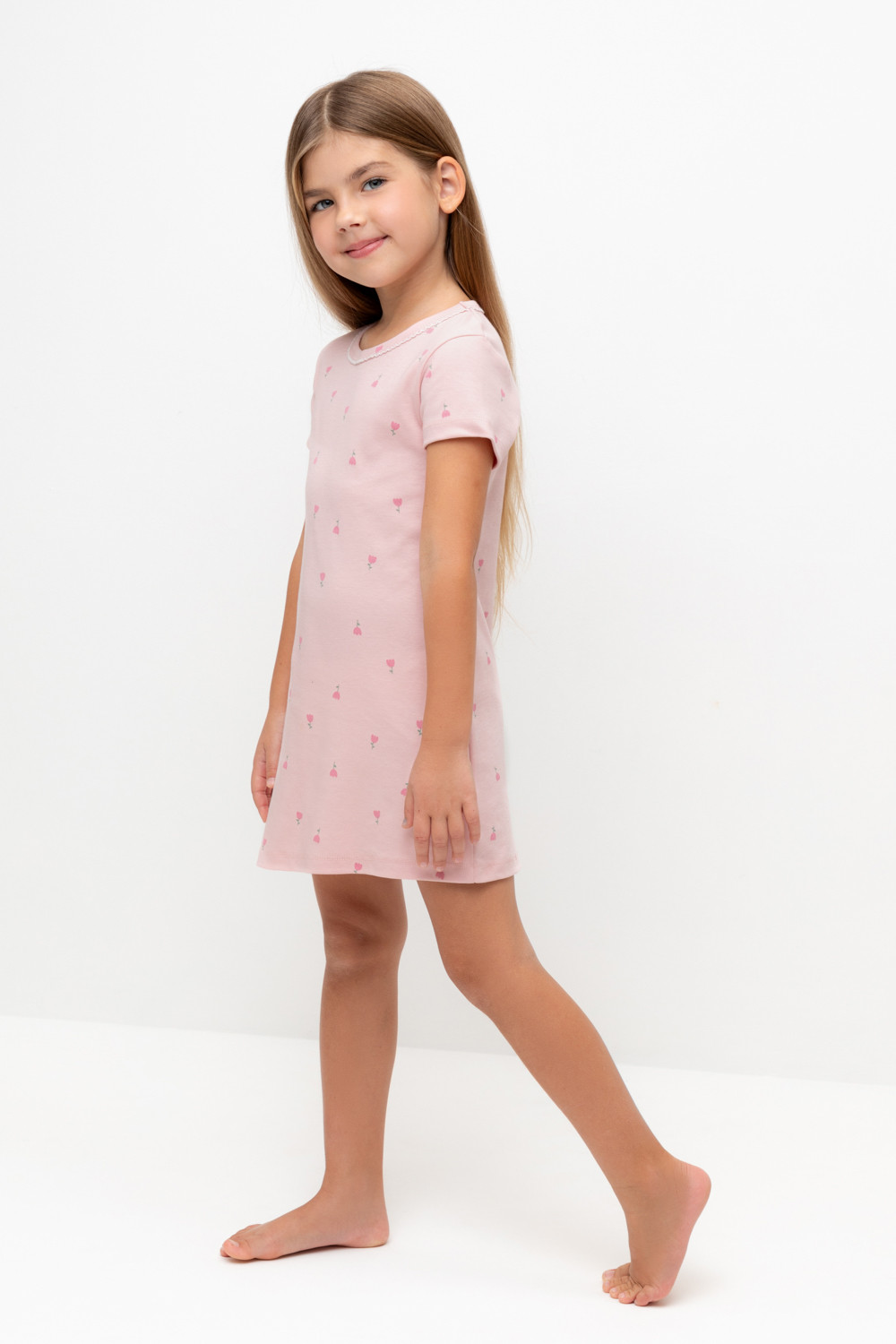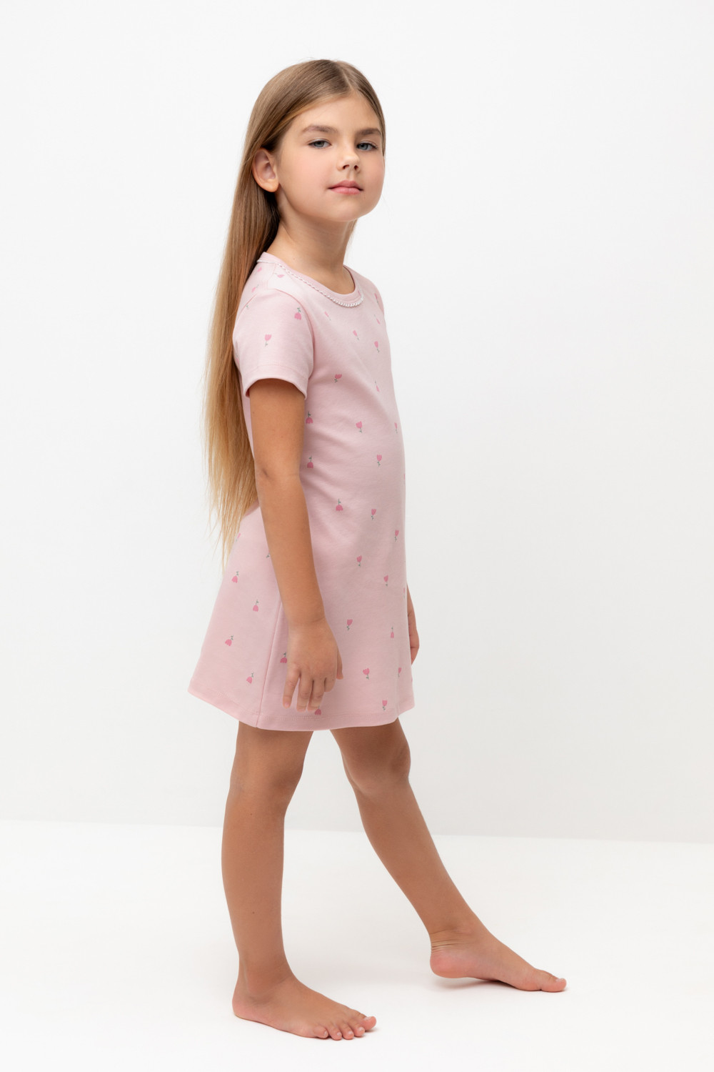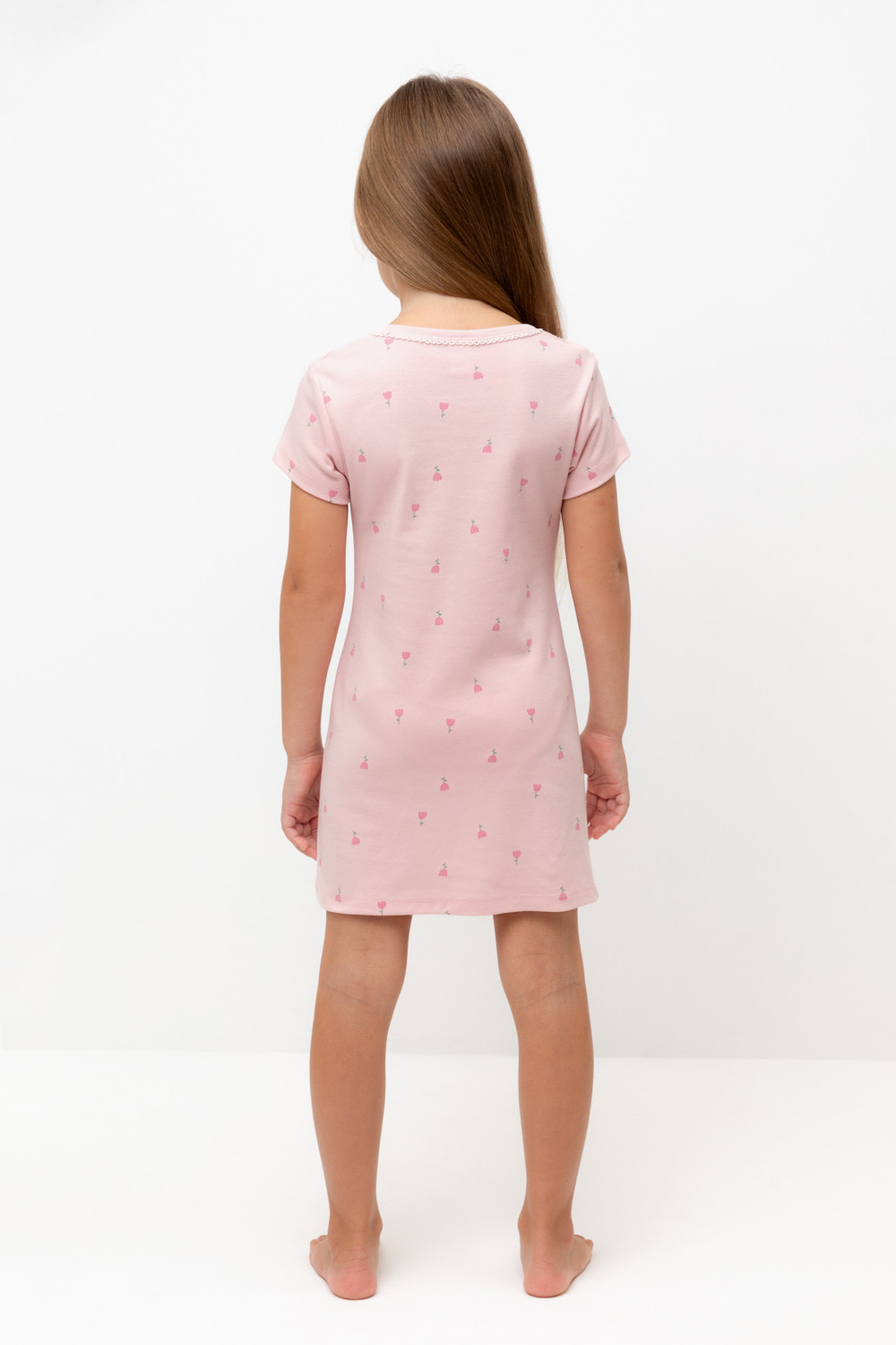 сорочка для девочки К 1156/розовый жемчуг,цветочная поляна