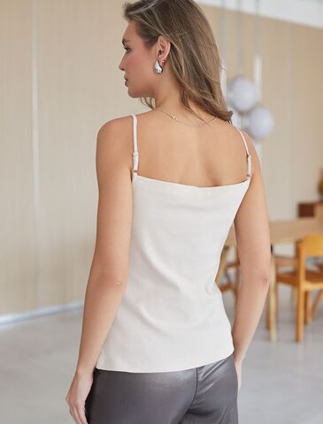 Бежевая майка идеально подойдет как для работы, так и для деловых встреч, добавляя нотку женственности в любой наряд, под пиджак, кардиган, можно носить как самостоятельную вещь, без верхнего слоя.