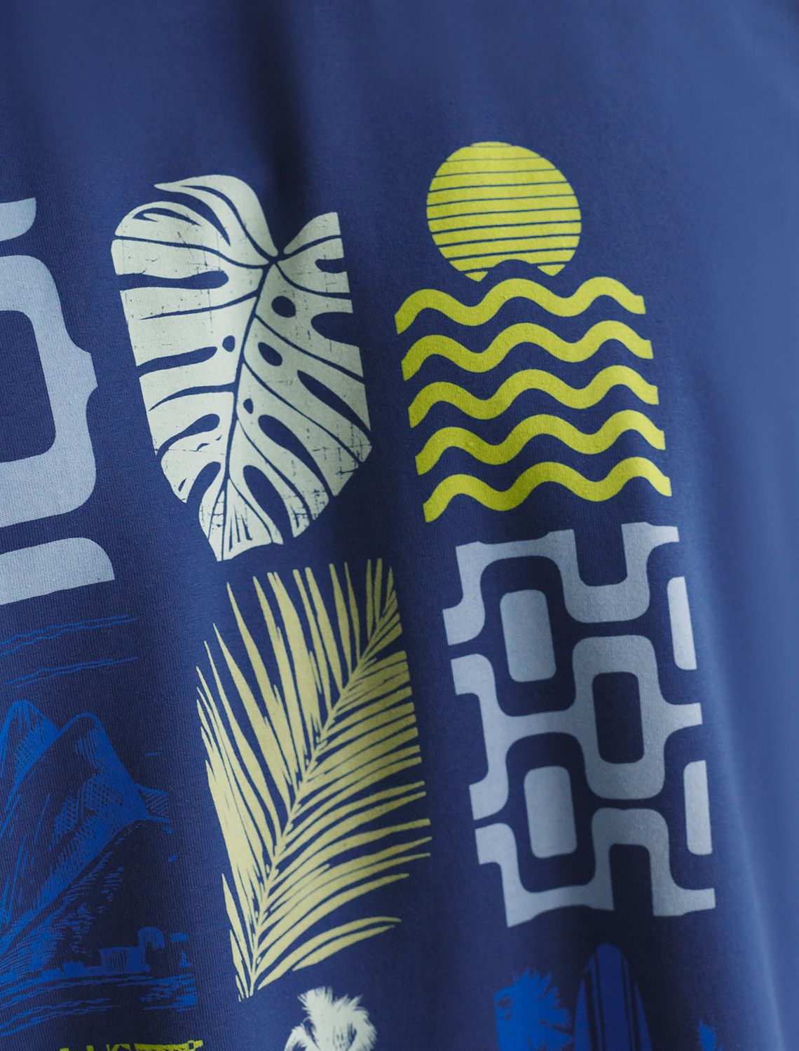 Перевод принта: Ready for paradise - готов к райскому отдыху. Футболка свободного кроя выполнена из премиального хлопка. Авторский принт нанесен красками с устойчивым покрытием. Благодаря эластану, носить изделие очень комфортно, и оно сохранит свой безупречный вид в течение долгого времени. На рукаве нашивка из эко-кожи с логотипом бренда.