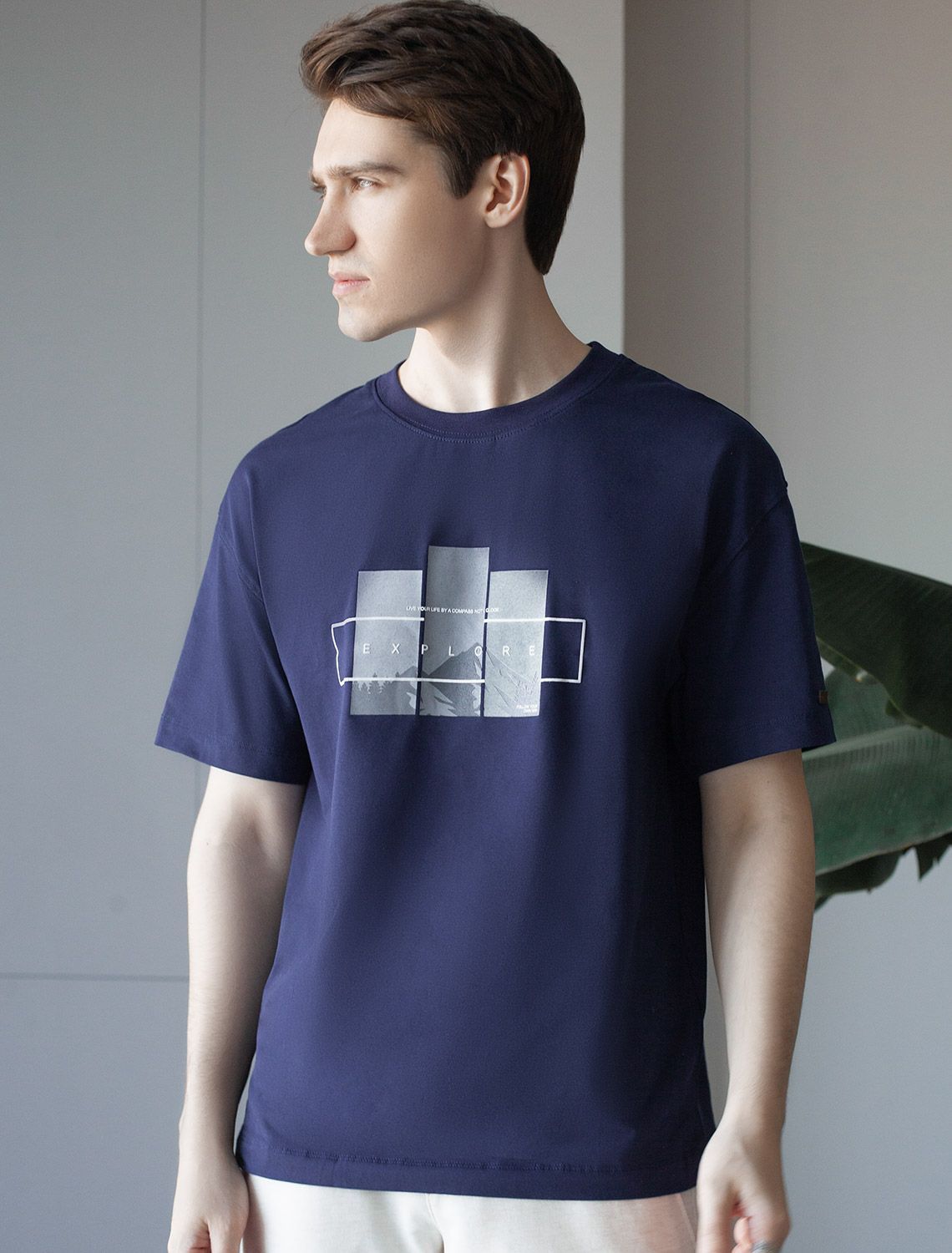 Перевод принта: Live your life by a compass, not a clock, explore, follow your way - живи по компасу, а не по часам, изучай, следуй своему пути. Футболка свободного кроя выполнена из премиального хлопка. Авторский принт нанесен красками с устойчивым покрытием. Благодаря эластану, носить изделие очень комфортно, и оно сохранит свой безупречный вид в течение долгого времени. На рукаве нашивка из эко-кожи с логотипом бренда.
