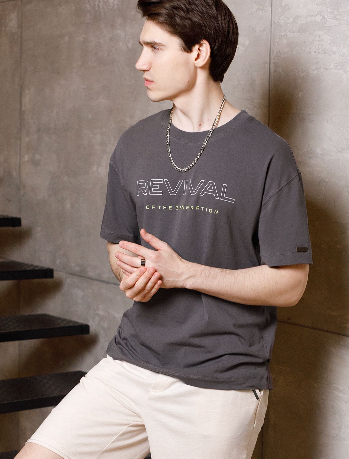 Перевод принта: Revival of the generation - возрождение поколения. Футболка свободного кроя выполнена из премиального хлопка. Авторский принт нанесен красками с устойчивым покрытием. Благодаря эластану, носить изделие очень комфортно, и оно сохранит свой безупречный вид в течение долгого времени. На рукаве нашивка из эко-кожи с логотипом бренда.