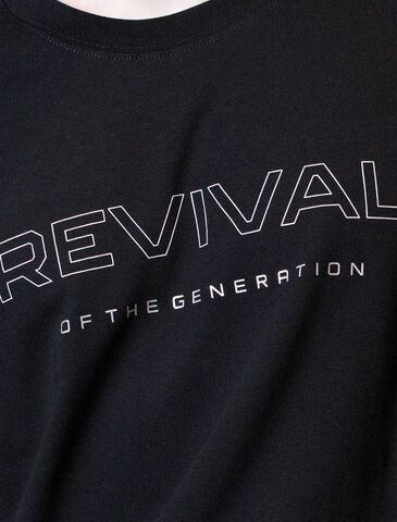 Перевод принта: Revival of the generation - возрождение поколения. Футболка свободного кроя выполнена из премиального хлопка. Авторский принт нанесен красками с устойчивым покрытием. Благодаря эластану, носить изделие очень комфортно, и оно сохранит свой безупречный вид в течение долгого времени. На рукаве нашивка из эко-кожи с логотипом бренда.