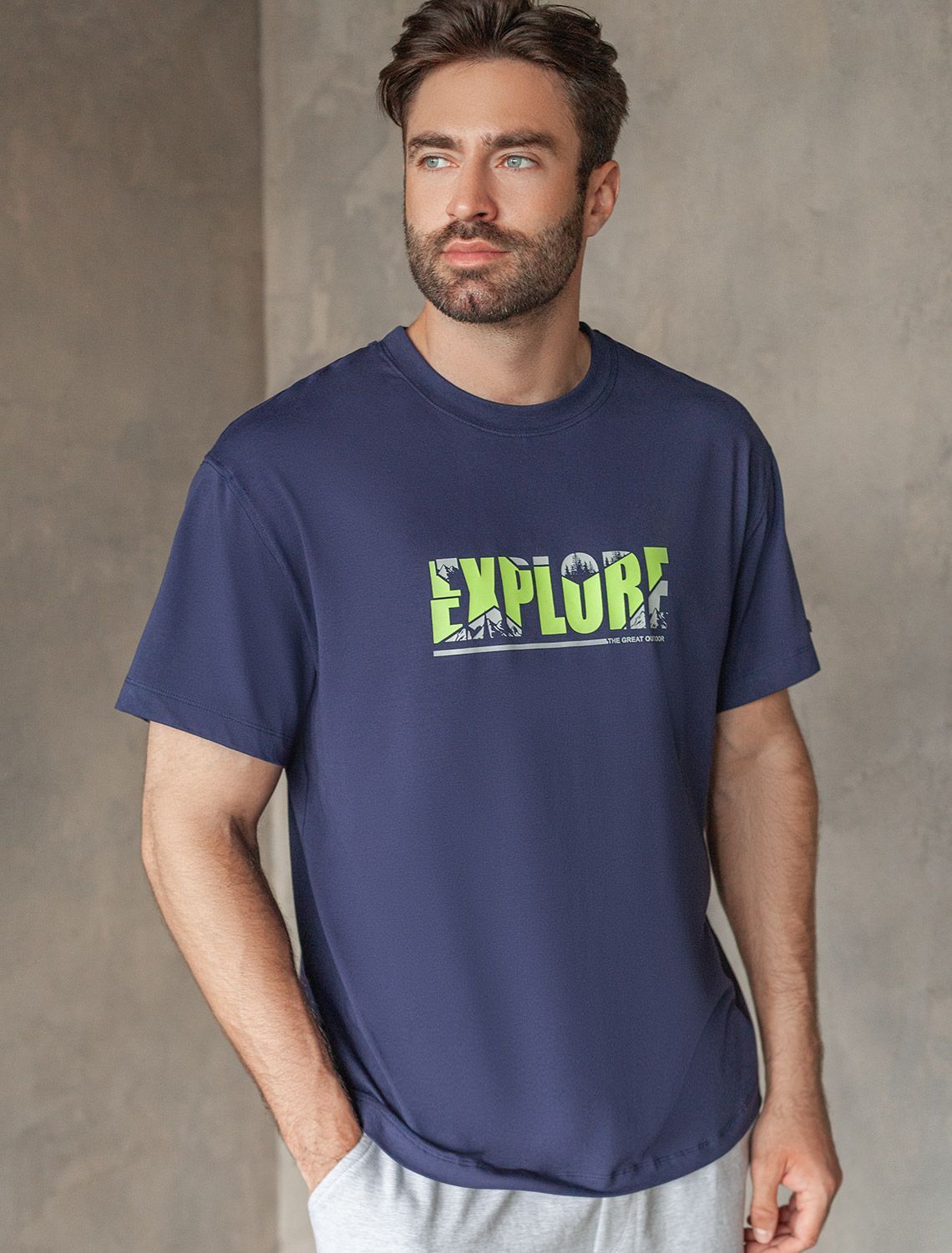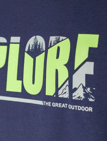 Перевод принта: Explore the great outdoors - исследуй мир. Футболка свободного кроя выполнена из премиального хлопка. Авторский принт нанесен красками с устойчивым покрытием. Благодаря эластану, носить изделие очень комфортно, и оно сохранит свой безупречный вид в течение долгого времени. На рукаве нашивка из эко-кожи с логотипом бренда.