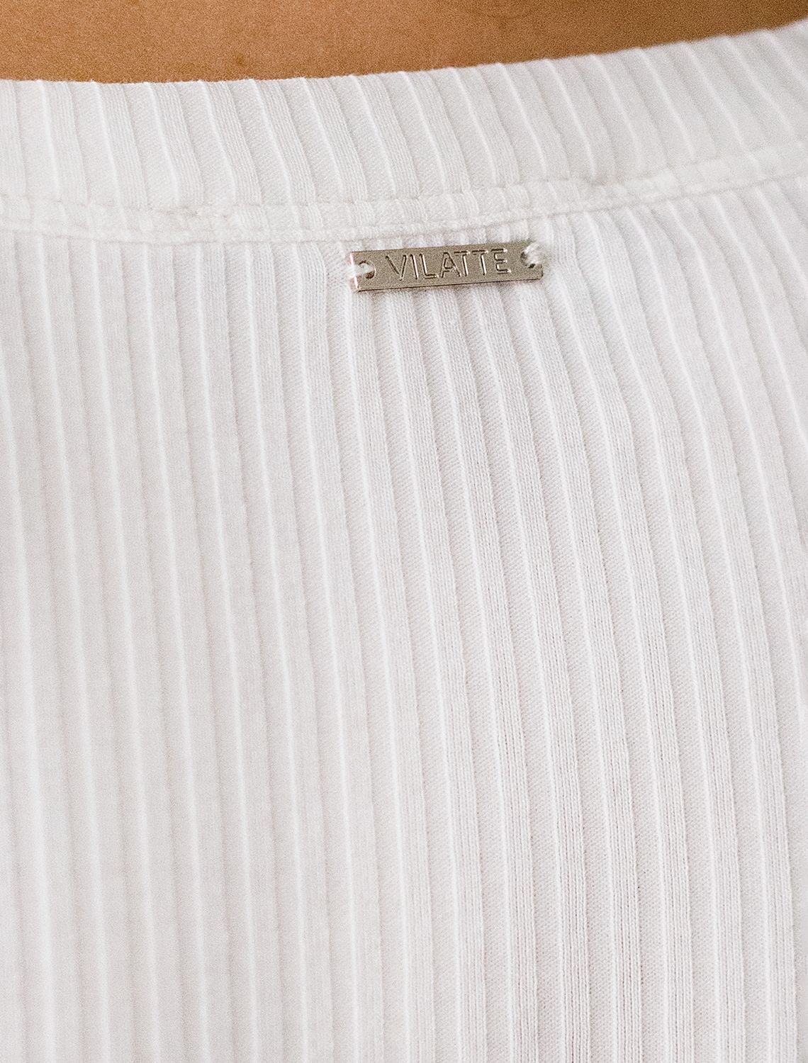 Топ выполнен из трикотажа в широкий рубчик. Эластичный хлопковый трикотаж сидит по фигуре, не сковывает движений и очень комфортный в носке. Фактура вертикальных полос визуально стройнит и вытягивает силуэт. Базовое изделие хорошо впишется в любой гардероб. Идеально подходит для многослойных образов.