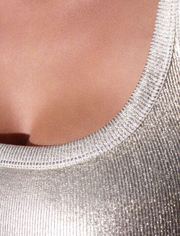 Топ в рубчик с широкими лямками с матовым покрытием металлик из хлопка с эластаном D43.229 (129395)
