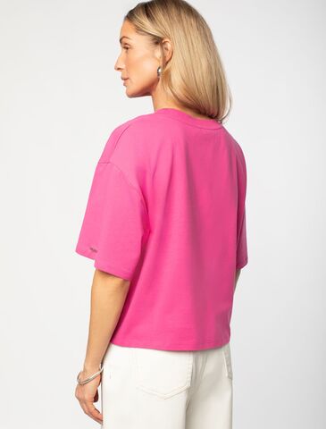 Базовая футболка из 100% хлопка. Укороченная модель свободной посадки идеально впишется в повседненвый гардероб. Изделие хорошо держит форму и обеспечивает комфортный микроклимат в течение дня.