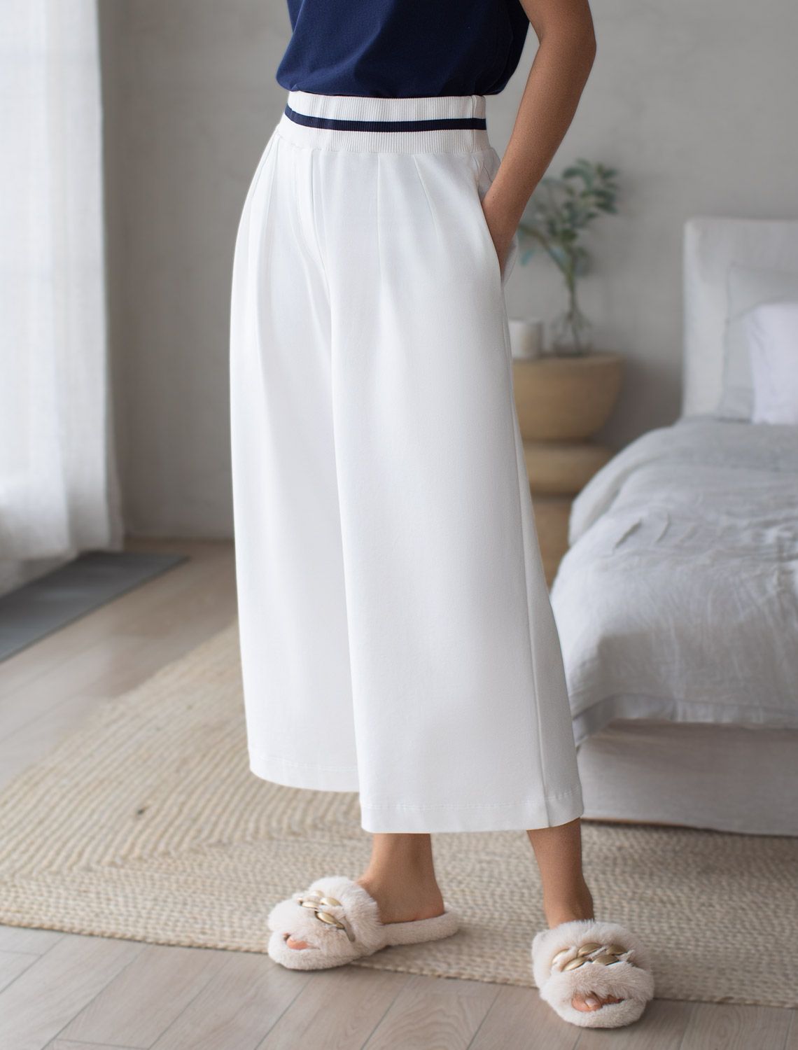 Укороченные широкие брюки из эластичного футера двухнитки D44.141 (118193)