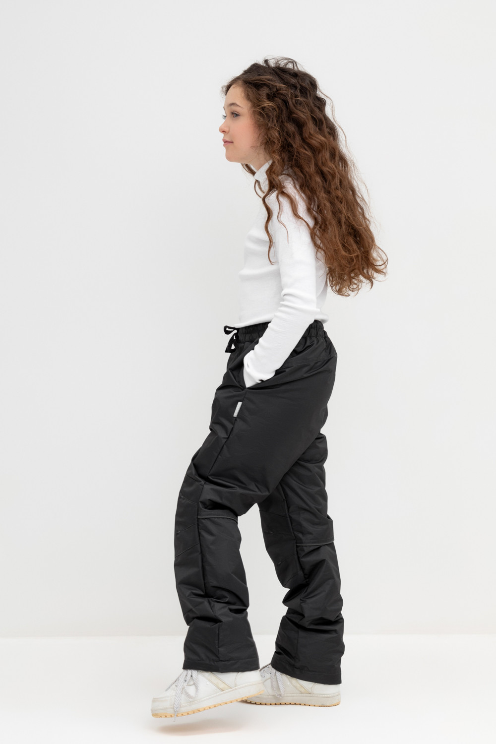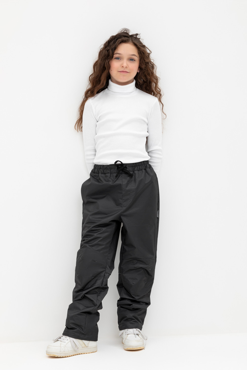 Ветровочные брюки из мембранной, фактурной ткани с дополнительной тефлоновой обработкой. Данный вид обработки предохраняет изделие от загрязнения и лучше отводит влагу. Подклад из 100% полиэстера - флиса. Область коленей дополнительно усилена деталями из основной ткани. В поясе предусмотрен шнурок для регулировки ширины изделия. Во всех изделиях верхнего ассортимента для безопасности ребенка предусмотрены светоотражающие элементы.