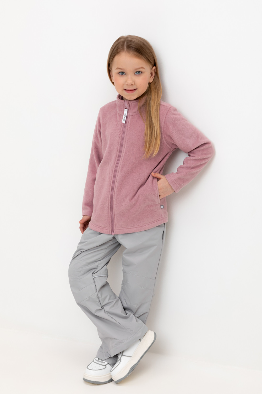 Ветровочные брюки из мембранной, фактурной ткани с дополнительной тефлоновой обработкой. Данный вид обработки предохраняет изделие от загрязнения и лучше отводит влагу. Подклад из 100% полиэстера - флиса. Область коленей дополнительно усилена деталями из основной ткани. В поясе предусмотрен шнурок для регулировки ширины изделия. Во всех изделиях верхнего ассортимента для безопасности ребенка предусмотрены светоотражающие элементы.