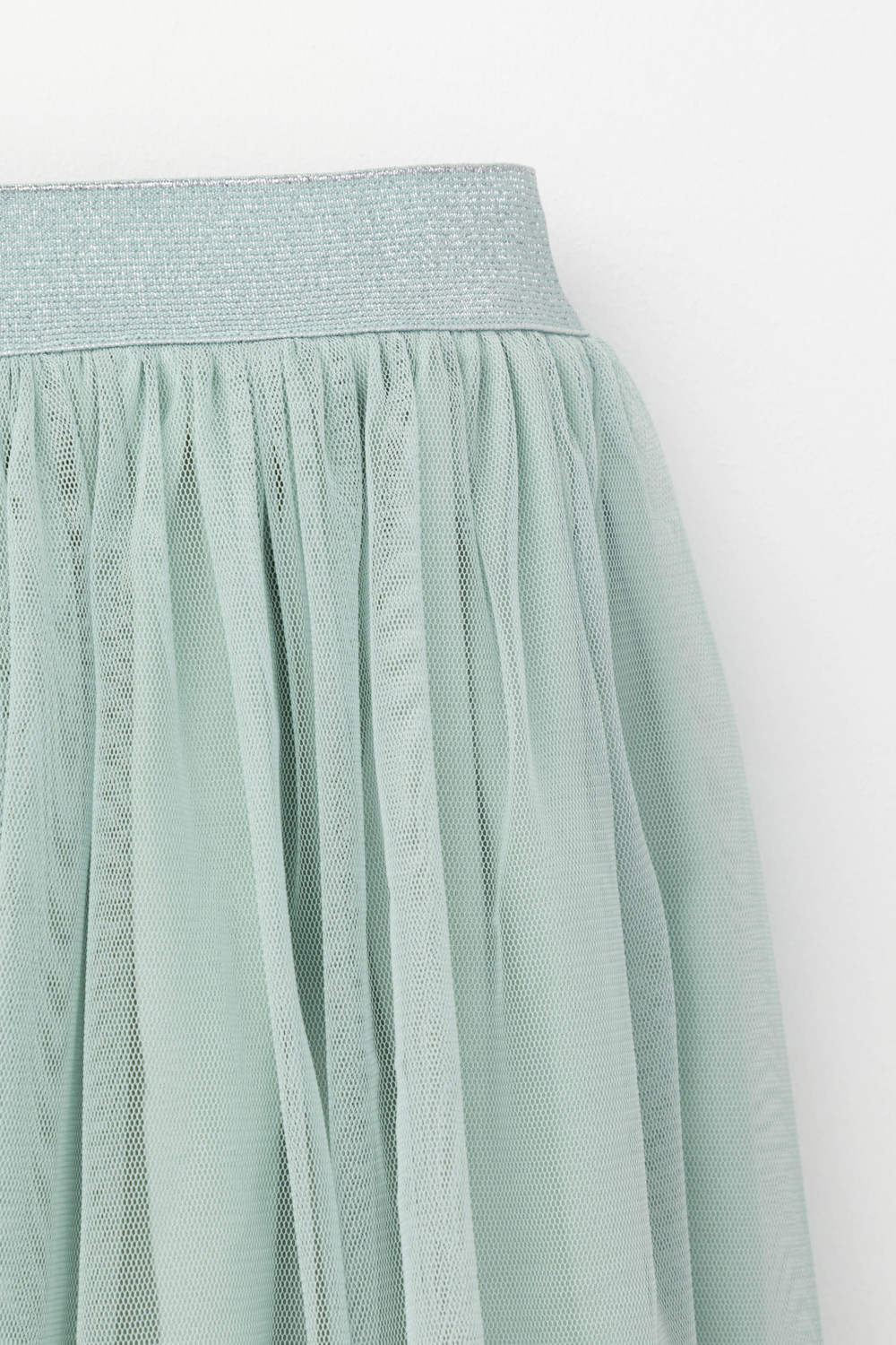 Нарядная летняя юбка для девочки с подкладом из трикотажного полотна. Верх изделия декорирован сеткой.