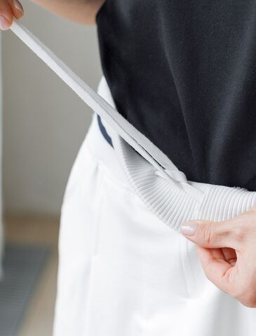 Юбка-шорты выполнена из эластичного футера двухнитки. В боковых швах расположены карманы. Внутренняя часть кармана из тонкого хлопка в тон полотна. Модель дополнена эластичным поясом, с контрастной полосой и золотистым логотипом бренда. Сочетается в костюме с джемпером D49.083 и D49.086