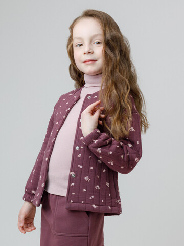 Бомбер на кнопках для девочки из стеганного трикотажного полотна. Удобные боковые карманы, трикотажный манжет по горловине. Оригинальный рисунок выполнен из стойких текстильных гипоаллергенных красителей. Изделие сохраняет цвет и форму после многократных стирок. Все трикотажные полотна производятся в соответствии с нормами швейцарского сертификата ЭкоТекс.