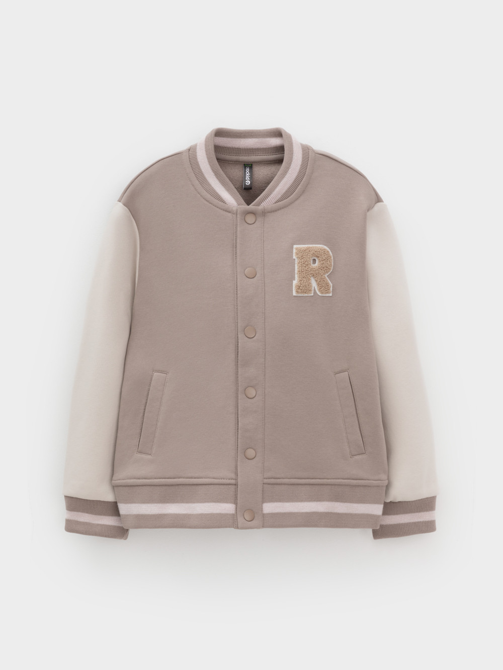 Бомбер для мальчика с контрастными рукавами из мягкого трикотажа. Воротник, манжеты и пояс вязаные. Спереди два кармана. Изделие сохраняет цвет и форму после многократных стирок. Все трикотажные полотна производятся в соответствии с нормами швейцарского сертификата ЭкоТекс.