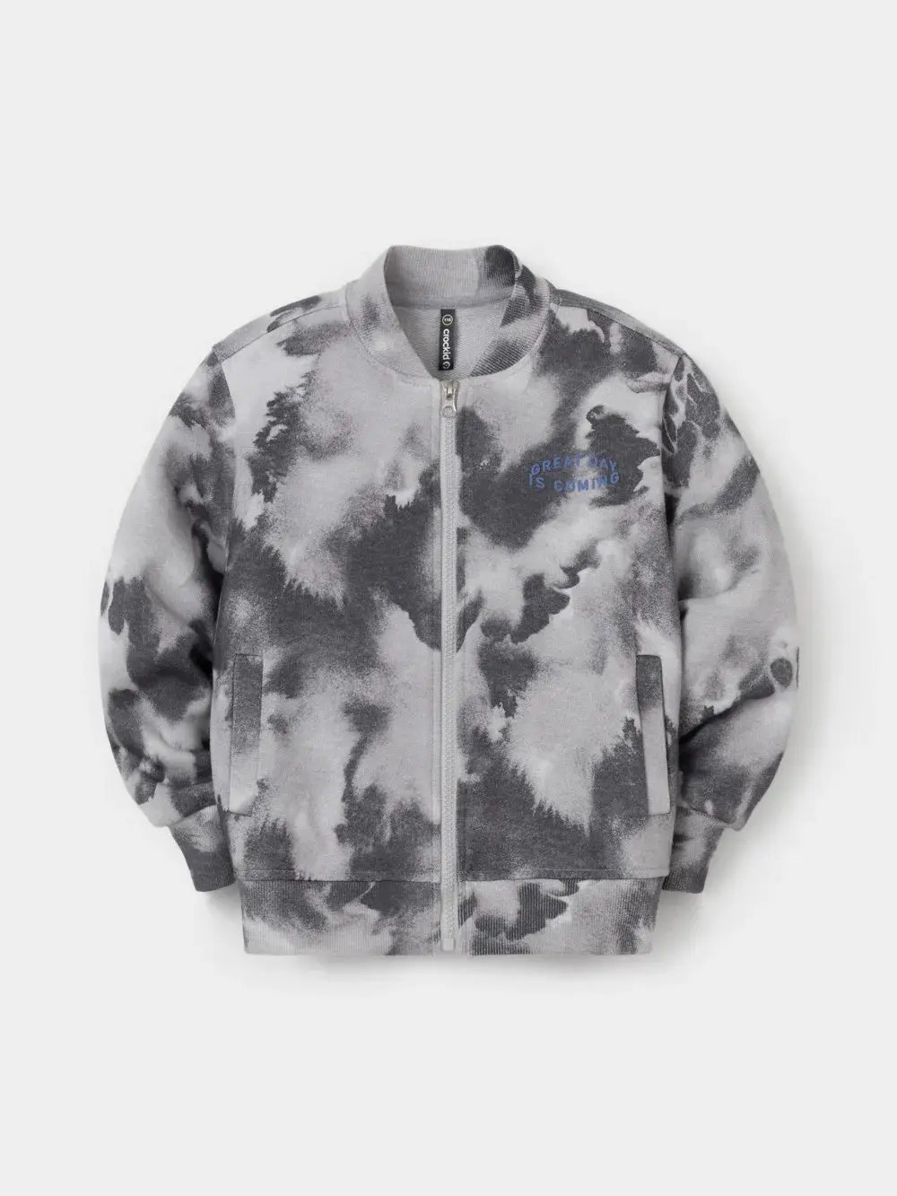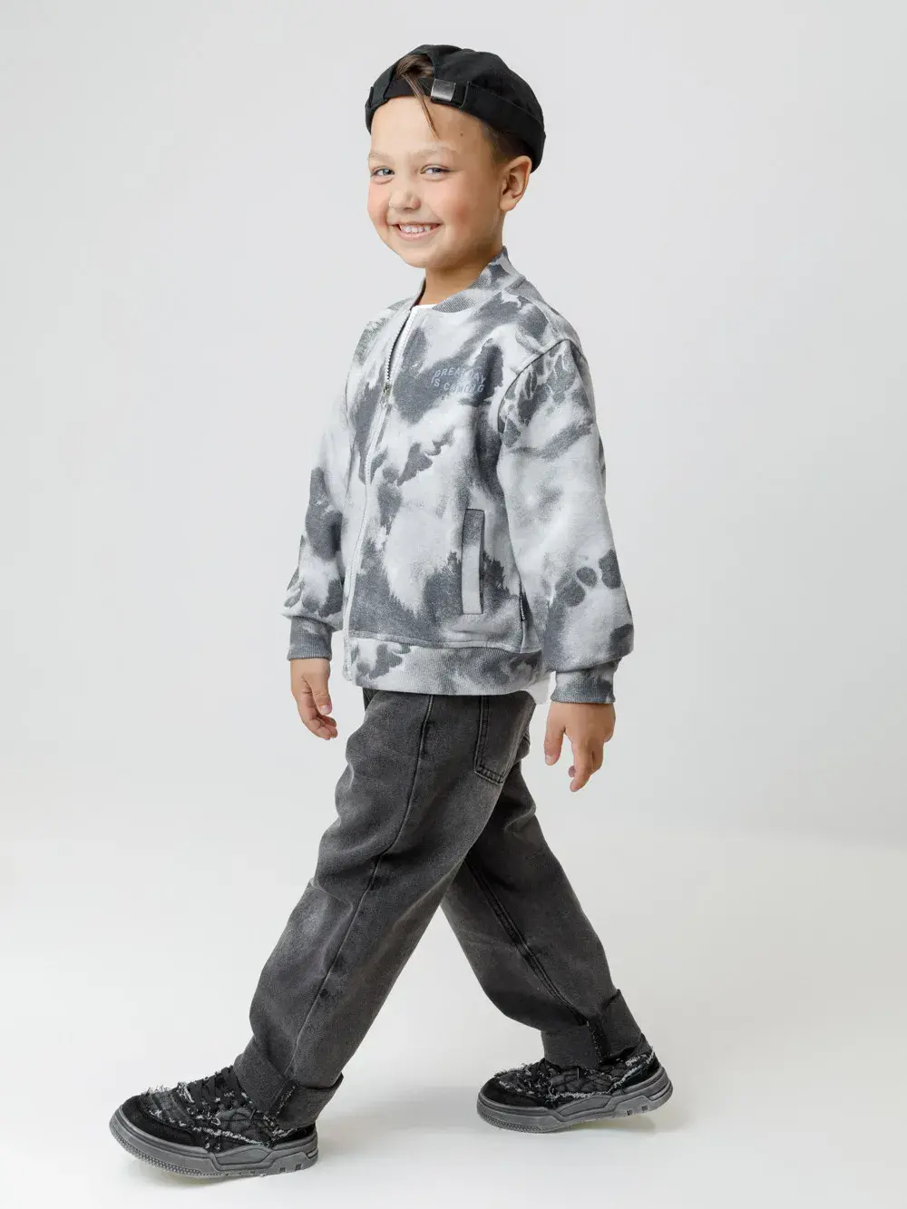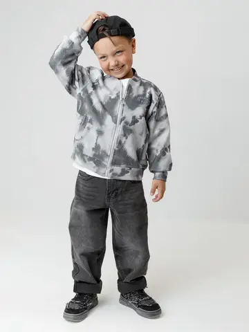 Бомбер для мальчика на молнии. Изготовлен из мягкого петельчатого трикотажа, произведённого из натурального хлопка. Воротник, манжеты и пояс выполнены из эластичного полотна. Спереди два кармана. Изделие сохраняет цвет и форму после многократных стирок. Все трикотажные полотна производятся в соответствии с нормами швейцарского сертификата ЭкоТекс.