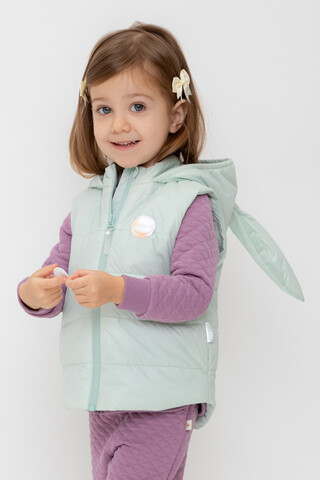 Стеганый жилет с капюшоном для девочки с утеплителем Fellex®: 120 г/м2. Выполнен из мембранной ткани с дополнительной тефлоновой обработкой. Данный вид обработки предохраняет изделие от загрязнения и лучше отводит влагу. Подклад: 60% хлопок и 40% полиэстер (на размерах 86-98), 100% полиэстер (на размерах 98-128). У изделия предусмотрена защита подбородка. По бокам два кармана. Во всех изделиях верхнего ассортимента для безопасности ребенка предусмотрены светоотражающие элементы.