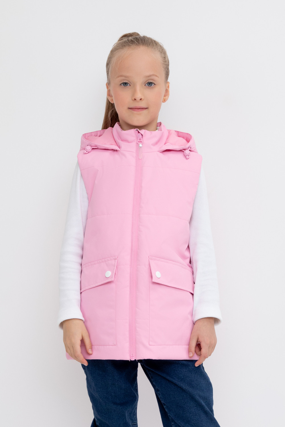 Стеганный жилет с капюшоном для девочки с утеплителем Fellex®: 120 г/м2. Выполнен из мембранной ткани с дополнительной тефлоновой обработкой и матовым покрытием. Данный вид обработки предохраняет изделие от загрязнения и лучше отводит влагу. Подклад из 100% полиэстра. У изделия предусмотрена защита подбородка. Накладные карманы с клапанами на кнопках. Во всех изделиях верхнего ассортимента для безопасности ребенка предусмотрены светоотражающие элементы.