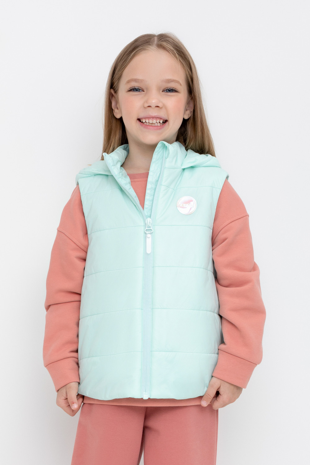 Стеганный жилет с капюшоном для девочки с утеплителем Fellex®: 120 г/м2. Выполнен из мембранной ткани НЕЙЛОН с дополнительной тефлоновой обработкой. Данный вид обработки предохраняет изделие от загрязнения и лучше отводит влагу. Подклад из 60% хлопка и 40% полиэстера в размерах 86-92, 92-98 и из 100% полиэстера в размерах от 98-104 до 122-128. У изделия предусмотрена защита подбородка. Несъемный капюшон имеет эластичную резинку для лучшего прилегания. Во всех изделиях верхнего ассортимента для безопасности ребенка предусмотрены светоотражающие элементы.