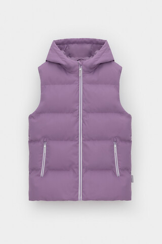 Стеганый жилет с капюшоном для девочки с утеплителем Fellex®: 120 г/м2. Выполнен из мембранной ткани с дополнительной тефлоновой обработкой. Данный вид обработки предохраняет изделие от загрязнения и лучше отводит влагу. Подклад из 100% полиэстра. Капюшон не снимается. Изделие застёгивается на молнию, предусмотрена защита подбородка. Два кармана по бокам застёгиваются на молнии. Во всех изделиях верхнего ассортимента для безопасности ребенка предусмотрены светоотражающие элементы.