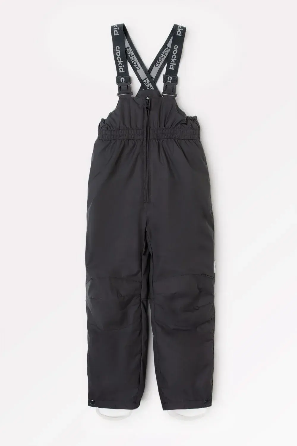 Зимний полукомбинезон с утеплителем 120 г/м2. Верх с тефлоновым покрытием отталкивает воду и грязь и обладает "дышащими" свойствами. Подклад из полиэстера. Застёгивается на молнию. Эластичная резинка в талии обеспечивает удобную посадку. Лямки регулируются по длине. Анатомической крой в области коленей. Манжеты регулируются под ширину обуви и фиксируются на ноге при помощи кнопки. Силиконовые штрипки и противоснежная юбка не дают брюкам задраться.